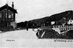 - ↑ Bahngebäude 1965 abgetragen. Während des Zweiten Weltkriegs war, gesondert, eine lang gestreckte Wartehalle errichtet worden, um der Masse der Rüstungsarbeiter ein schützendes Dach zu geben. Die im Bild dargestellte eiserne Brücke ersetzte 1901 eine aus 1830 stammende Holzkonstruktion. – Hanauska: Hirtenberg, S. 243, 246.