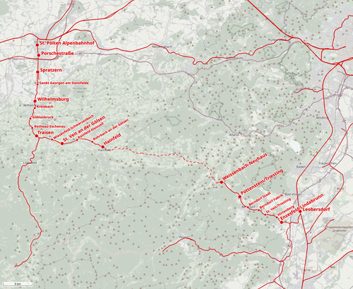 | Kursbuchstrecke: | 113 (St. Pölten – Hainfeld/Schrambach, Traisentalbahn) 513 (Leobersdorf – Weißenbach-Neuhaus, Triestingtalbahn) |