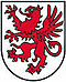 Auf silbernen Hintergrund, ein roter, aufgerichteter, goldbewehrter Greif.