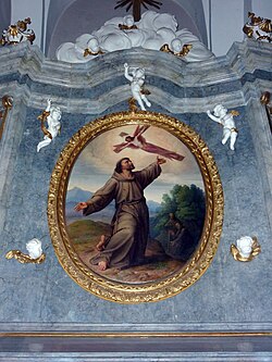 | Pfarrkirche hl. Dreifaltigkeit, Bruck an der Leitha, Niederösterreich - Gemälde hl. Franz von Assisi (Leopold Schulz) am Franziskus-Altar (Seitenkapelle links) Dieses Bild zeigt das in Österreich unter der Nummer 10840 denkmalgeschützte Objekt. ( Commons , de , Wikidata ) | Eigenes Werk | BSonne | Datei:Bruck an der Leitha Pfarrkirche3.jpg | |