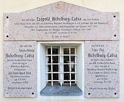 | Grabsteine für die Adelsfamilie Aichelburg-Labia am Friedhof von Sankt Georgen am Sandhof, IX. Bezirk Annabichl, Landeshauptstadt Klagenfurt am Wörthersee , Kärnten , Österreich , EU | Eigenes Werk | Johann Jaritz | Datei:Klagenfurt Pfarrkirche St Georgen Grabstaette von Aichelburg-Labia 28052016 2109.jpg |