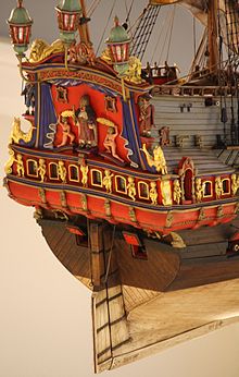 | Modell des hamburgischen Konvoischiffes Leopoldus Primus - totale Heckspiegelansicht | Selbst fotografiert | McKarri | Datei:Leopoldus Primus-Hecktotale.jpg | |