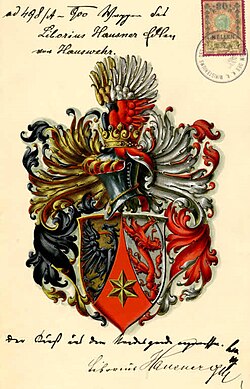 - ↑ AT-OeStA/AVA Adel HAA AR 348.3 Hausner, Liborius, k.u.k. Generalmajor, Adelsstand, „Edler von Hauswehr“, 1900.09.12 (Akt (Sammelakt, Grundzl., Konvolut, Dossier, File)), auf archivinformationssystem.at