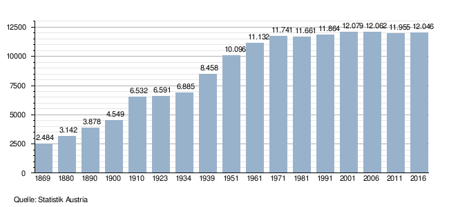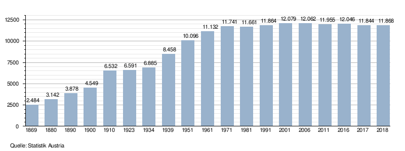 - ↑ Statistik Austria (PDF; 35 kB) „Bevölkerungsentwicklung 1869–2009“, zuletzt abgerufen am 27. März 2010