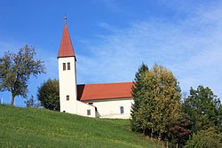 Die weithin sichtbare, auf einer Anhöhe neben dem Ort stehende Kirche St. Laurentius aus der Mitte des 17. Jahrhunderts hat 1958 einen neuen Turm erhalten. Der Kreuzweg mit 14 Stationen wurde 1846 errichtet und ist mit Kreuzwegbildern von Hans Freudenschuss aus den 1930er Jahren versehen. Für den Hochaltar existieren fünf Altarblätter aus dem Anfang des 20. Jahrhunderts, die im Laufe des Kirchenjahres entsprechend gewechselt werden.[6] Man geht davon aus, dass die Kirche auf eine romanische Anlage zurückgeht. Die alte Struktur ist auf einem Aquarell von 1813 gut erkennbar, wo ein für romanische Dorfkirchen typisches, kleines, hochgestelltes Fenster im Bereich der Sängerempore ersichtlich ist.[7] Bemerkenswert sind die in dieser Zeit bestehenden zwei großen, viereckigen Maueröffnungen schräg darunter, die darauf hindeuten, dass das Kirchlein zu dieser Zeit profanisert gewesen ist, also als Stall gedient haben wird. Während diese Kirche wieder geweiht wurde, war das beim Kirchlein in St. Paul, wenig Kilometer entfernt am Hühnersberg (Hirschberg) nicht mehr der Fall. Dort wurde die Kirche bis in die 1960er Jahre als Wohngebäude benutzt und später durch ein Einfamilienhaus ersetzt. Ein Umbau von St. Laurentius in ein etwas größeres Gotteshaus ist Mitte des 19. Jahrhunderts erfolgt. Aufgrund von Knochenfunden um die Kirche scheint es wahrscheinlich, dass sie eine Eigenkirche eines Lehensträgers, wahrscheinlich vom nahen Brixener Amthof, ähnlich wie St. Magdalena ob Molzbichl, gewesen ist. Für einen Dorffriedhof war das Gelände zu abschüssig und die Kirche zu klein. An der Südmauer der Kirche ist eine Grabinschrift aus Marmor eingemauert, die folgendermaßen gelesen wird: „Für den verstorbenen L Seccio Summo und dessen Gemahlin Seccia Cupita, seine besten Eltern, ließ der Sohn Lucius Seccius Summus bei Lebzeiten (das Grabmal) machen sowohl für sich als auch seine beste Gemahlin Lunia Fusca. Dieses Grabmal folgt nicht dem Erben.“ Die Schlussformel bedeutet, dass sich der Erbe nicht in diesem Grabmal bestatten lassen darf. Die Genannten sind römische Bürger, wobei der Name Seccius auf einheimisch keltische Abstammung hindeutet.