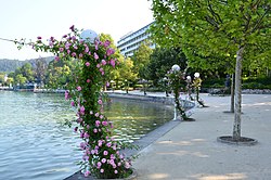 | Kletterrosen mit Laterne und das Parkhotel an der Johannes-Brahms-Promenade, Gemeinde Pörtschach am Wörthersee , Bezirk Klagenfurt Land, Kärnten , Österreich , EU | Eigenes Werk | Johann Jaritz | Datei:Poertschach Johannes-Brahms-Promenade mit Parkhotel 18062013 567.jpg | |