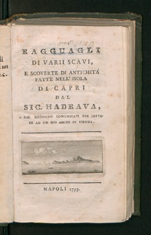 | Ragguagli di varii scavi e scoverte di antichità fatte nell'isola di Capri | Verfügbar in der digitalen Bibliothek der Europäischen Bibliothek für Information und Kultur (BEIC) und hochgeladen im Rahmen einer Partnerschaft mit der BEIC . | Hadrava, Norbert | Datei:Ragguagli di varii scavi e scoverte di antichità fatte nell'isola di Capri.tif |