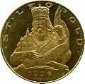 | 100 Schilling Goldmünze (1934) Österreichs . In dieser Form wurde die Münze von 1935 bis 1938 mit einer Auflage von knapp 18.000 Stk. geprägt, wobei der letzte Jahrgang großteils eingeschmolzen wurde. Im Gegensatz zu der 100 Schillingmünze, die von 1926 bis 1934 geprägt wurde, hat diese reversseitig ein Motiv mit starkem Österreichbezug sowie kirchlich-religiösen Inhalt und zwar die Magna Mater Austriae, auch Mariazeller Madonna bezeichnet. Die Kennzeichnung Österreichs als Republik entfiel in der Legende und aversseitig wird das Wappen des Ständestaates ( Doppeladler ) dargestellt. Durchmesser: 33,00 mm; Feinheit: 900/1000; Feingewicht: 21,17 g; Rauhgewicht: 23,523 g | Eigenes Werk | C.Stadler/Bwag | Datei:Österreich - 100 Schilling Münze, 1936, Avers.JPG | |
