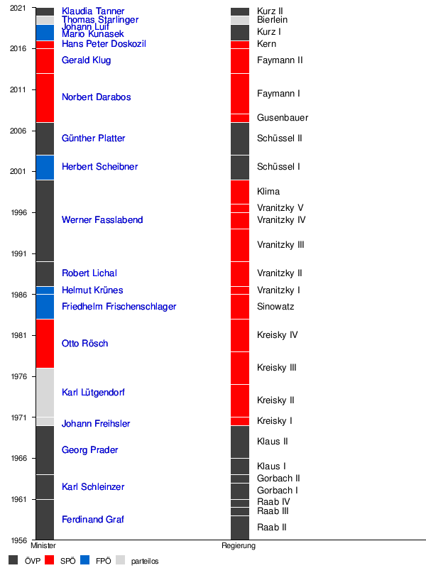 | 1 | Ferdinand Graf | 15. Juli 1956 | ÖVP | Bundesministerium für Landesverteidigung |