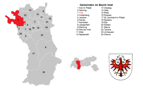 | Bezirk Imst | Eigenes Werk ( Originaltext: selbst erstellt ) | Joschi Täubler | Datei:Gemeinden im Bezirk Imst.png | |