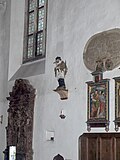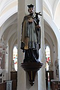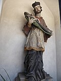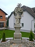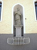 An der rechten Seitenwand des Hochaltarraumes in der Pfarrkirche hl. Pantaleon befindet sich auf einem Sockel eine Statue Johannes Nepomuks. | ||