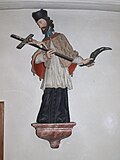 Auf dem rechten Seitenaltar der Pfarrkirche von Sankt Valentin befindet sich eine Statue Johannes Nepomuks. | |||