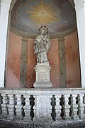 Neben dem Eingang der Basilika von Sonntagberg steht eine Statue Johannes Nepomuks aus der Mitte des 18. Jahrhunderts. | ||