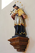 | An der rechten Langhauswand der kath. Pfarrkirche Mariä Himmelfahrt in Schrems (NÖ) befindet sich eine Figur des hl Johannes Nepomuk. | Eigenes Werk | Duke of W4 | Datei:Figur hl Johannes Nepomuk in der Pfarrkirche Schrems 2015-08.jpg | |