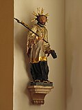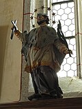 An der rechten Langhauswand der Pfarrkirche Mariä Himmelfahrt in Schrems befindet sich eine Statue Johannes Nepomuks. | ||