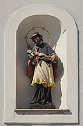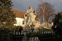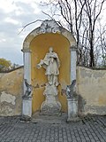 Bein Eingang zum Kirchhof steht eine Statue Johannes Nepomuks aus der Mitte des 18. Jahrhunderts. | ||