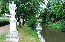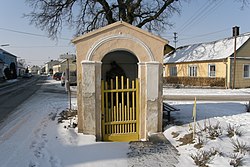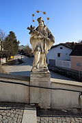Bei der Brücke im Zuge der Wiener Straße steht eine Statue Johannes Nepomuks mit Putten und Wolken aus der Mitte des 18. Jahrhunderts. Auf der Rückseite des Sockels befindet sich ein verwittertes Relief der Beichte der Königin. | ||