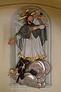Am Triumphbogen der Pfarrkirche Hörersdorf befindet sich eine geschnitzte Darstellung Johannes Nepomuks. | |||