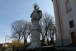 Beim östlichen Ortsende steht eine Statue Johannes Nepomuks aus dem zweiten Viertel des 18. Jahrhunderts. | ||