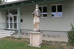 Auf dem Weg zur Kirche steht eine gut erhaltene Statue. Auch diese Statue steht unter Denkmalschutz.[2] | ||
