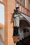 An der linken Seite des Langhauses der Filialkirche Neuhaus am Zellerrain befindet sich eine Statue Johannes Nepomuks aus der Mitte des 18. Jahrhunderts. | ||