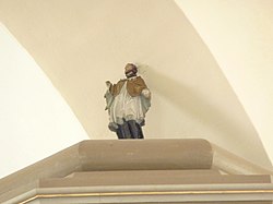 Auf dem Schalldeckel der Pfarrkirche Bärnkopf befindet sich eine kleine Statue Johannes Nepomuks. | ||