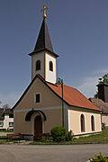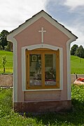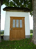 An der südseitigen Außenwand der 1904 errichteten und Johannes Nepomuk geweihten Ortskapelle befindet sich eine Nische mit einer polychromierten Statue des Heiligen aus der Mitte des 18. Jahrhunderts. | ||