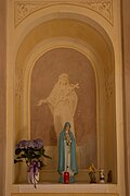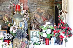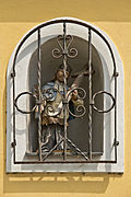 Über der Tür der Ortskapelle von Wegscheid am Kamp befindet sich eine Nischenfigur Johannes Nepomuks. | ||