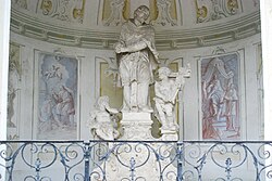 | Die Meierhofkapelle nördlich des Schlosses ist ein schlichter Bau des späten 16./frühen 17. Jahrhunderts. | Eigenes Werk | Duke of W4 | Datei:Figur Johannes Nepomuk in der Meierhofkapelle Schwarzenau.jpg | |