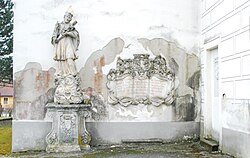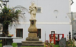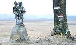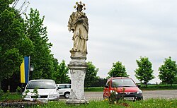 Beim westlichen Ortsende steht eine moderne Wegkapelle mit einer Statue Johannes Nepomuks aus dem 19. Jahrhundert. | ||
