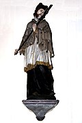 An der nordseitigen Mauer des Langhauses der Pfarrkirche von Unterpullendorf befindet sich eine aus Holz geschnitzte Statue des Heiligen aus dem 18. Jahrhundert. | |||