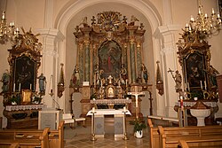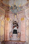 Im Auszug des rechten Seitenaltars der Pfarrkirche von Steinberg an der Rabnitz befindet sich eine Statue Johannes Nepomuks. | |||