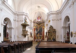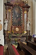 Auf dem rechten Seitenaltar der Pfarrkirche von Klostermarienberg befindet sich ein Altargemälde mit der Darstellung Johannes Nepomuk in der Glorie. | |||
