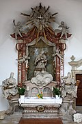 | Johannes-Nepomuk-Altar rechts in der Neuklosterkirche in Wiener Neustadt (Niederösterreich): Altarbild von Paul Troger, rechts heiliger Nikolaus, links heiliger Valentin, Mitte die Figur des gnadenreichen Prager Jesukindes aus dem Deutschordenskloster Bräunlichfeld (Text laut Erklärungstafel am Altar) | Eigenes Werk | GuentherZ | Datei:GuentherZ 2010-12-11 0011 Wiener Neustadt Neuklosterkirche Johannes-Nepomuk-Altar.jpg | |