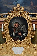Im rechten Seitenschiff der Neuklosterkirche von Wiener Neustadt befindet sich ein Johannes-Nepomuk-Altar mit einem Altarbild von Paul Troger mit einer Darstellung des Heiligen als Helfer der Armen aus dem Jahr 1748. | ||