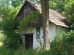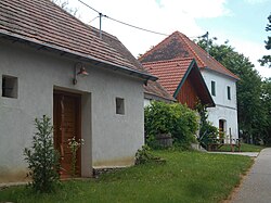 Das einseitige Kellergassensystem befindet sich südöstlich knapp außerhalb des Orts. Es umfasst 13 Gebäude auf 150 Metern Länge, etwa die Hälfte davon erneuerungsbedürftig oder verfallen.[4] | ||