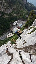 Anspruchsvoller Sportklettersteig im modernen Stil am Trobefelsen nahe der Türkenschanze. |