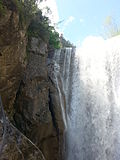 Entlang des Millnatzenbaches passiert der Klettersteig vier Wasserfälle. Am ersten Wasserfall kann eine C/D-Stelle als alternative Route gewählt werden. |