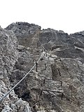 Ein teilweise mit Leitern versicherter Steig auf den Trogkofel am Nassfeld, nahe der italienischen Grenze. |