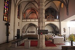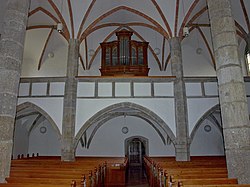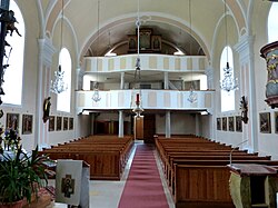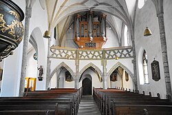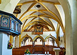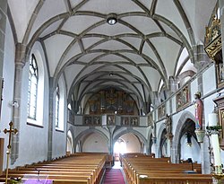 | Altmünster ( Oberösterreich ). Kath. Pfarrkirche hl. Benedikt: Blick ins Langhaus ( 1473 ) | Eigenes Werk | Wolfgang Sauber | Datei:Altmünster St.Benedikt - Innenraum 2.jpg | |