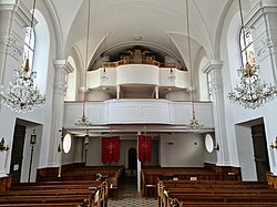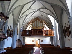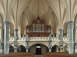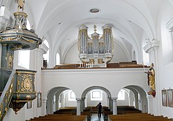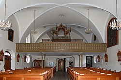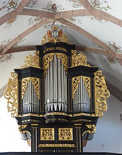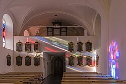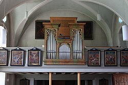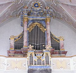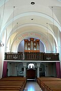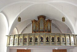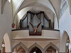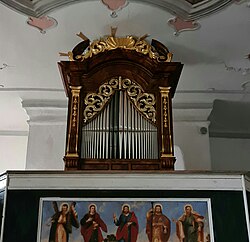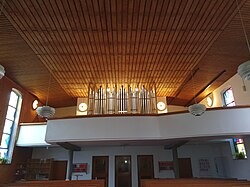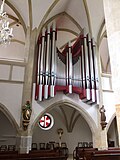 Bahnhofstraße 20 | Oswald Kaufmann | 2015 | II/P | 18 | Erste Orgel 1898 von der Orgelbaufirma Lachmayr mit 8 Registern. Neubau durch Bruno Riedl im Jahr 1974 mit 17 Registern. Restaurierung durch Kaufmann Orgelbau im Jahr 2015 mit 18 Registern und 1116 Pfeifen[11] |