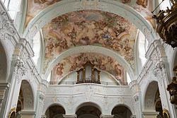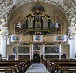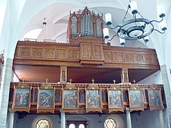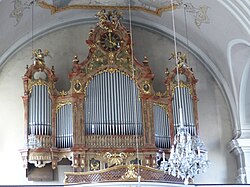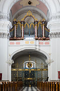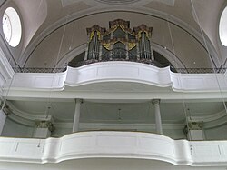 | Ranshofen - Katholische Pfarrkirche hl. Pankraz - Orgel, ursprünlich um 1622 unter Philipp Vetterl installiert. Das große Orgelgehäuse wurde im ausgehenden 19. Jahrhundert eingebaut | Eigenes Werk | Georg Karl Ell | Datei:Braunau - Ranshofen Katholische Pfarrkirche hl. Pankraz - 02 Orgel und Empore.jpg | |