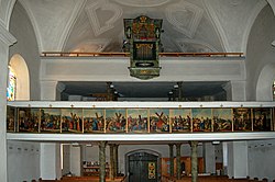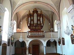 | Aschach an der Donau ( Oberösterreich). Kath. Pfarrkirche zum hl. Johannes den Täufer und hl. Nikolaus - Orgelempore | Eigenes Werk | Wolfgang Sauber | Datei:Aschach Pfarrkirche - Innenraum 2.jpg | |