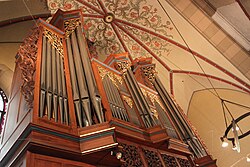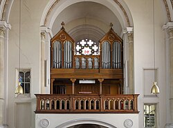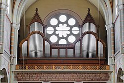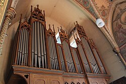 | Die Orgel der röm.-kath. Pfarrkirche Hl. Brigitta am Brigittaplatz im 20. Wiener Gemeindebezirk Brigittenau. Die neugotische Orgel mit 21 Registern auf zwei Manuale und Pedal wurde von der Orgelbaufirma Georg Friedrich Steinmeyer & Co. in Oettingen, Bayern, gebaut und zunächst auf der Wiener Weltausstellung 1873 präsentiert, anschließend übertrug man sie in die Pfarrkirche St. Brigitta. 1994 wurde die fast zur Gänze original erhalten Orgel von der Orgelbaufirma M. Walcker-Mayer in Guntramsdorf generalsaniert: 1 . Die Kirche selbst wurde ab 1867 nach Plänen des Architekten Friedrich Schmidt erbaut und am 31. Mai 1874 durch Kardinal Rauscher geweiht. | Eigenes Werk | C.Stadler/Bwag | Datei:Brigittenau (Wien) - Brigittakirche, Orgel.JPG | |