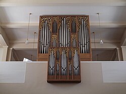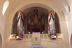 Kirchenplatz 1 | Gerhard Hradetzky | 1988 | II/P | 18 | Historisierender Neubau 1988 unter Beibehaltung des barocken Gehäuses und Verwendung bestehenden, historischen Pfeifenmaterials aus dem 18. Jahrhundert, Stimmung originalgetreu nach Werckmeister II (ermittelt aus den Längen der historischen Pfeifen). | |