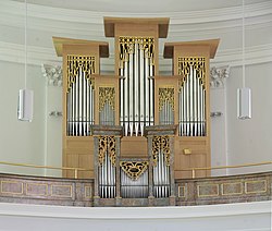 Kirchenplatz | Johannes Rohlf | 2016 | II/P | 16 | Neubau unter Verwendung des barocken Rückpositivs und dessen Pfeifenmaterials, Stimmung nach Werckmeister 1691 modifiziert | |