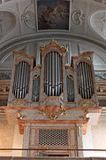 | Die Orgel der Lichtentaler Pfarrkirche im 9. Wiener Gemeindebezirk Alsergrund . Die ursprüngliche Orgel mit 22 Registern auf 2 Manualen und Pedal, später Schubert-Orgel genannt, wurde 1774 von Johann Michael Panzner aus Wien gebaut. 1984 baute die Oberösterreichische Orgelbauanstalt ( Orgelbau Kögler ) in das alte Gehäuse ein neues Werk mit 26 Registern auf 2 Manualen und Pedal ein. | Eigenes Werk | C.Stadler/Bwag | Datei:Alsergrund (Wien) - Lichtentaler Kirche, Orgel.jpg | |