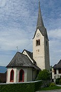 | Kirche in Lieseregg in der Gemeinde Seeboden in Kärnten / Österreich / Europäische Union . Links der Pfarrhof, in der Mitte der Kirchturm und rechts die alte Aufbahrungshalle. Im Hintergrund der Hühnersberg oder Hirschberg am ansteigenden Gemeineck ( Reißeckgruppe ). | Eigenes Werk | Joadl | Datei:Lieseregg 2009 01.JPG |