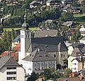 | Blick auf Tamsweg im Lungau (Bundesland Salzburg, Österreich) von St. Leonhard aus. Im Bildzentrum die Pfarrkirche; etwa auf gleicher Höhe ist weiter rechts das Rathaus (links neben einem leuchtend blauen Haus) zu erkennen. Der große Gebäudekomplex links von der Pfarrkirche (auch dieser ungefähr auf gleicher Höhe) ist das Krankenhaus. Im Hintergrund nahe dem Waldrand ist die Landwirtschaftliche Fachschule Tamsweg zu sehen. | Diese Datei wurde von diesem Werk abgeleitet: Tamsweg view remade.jpg : | Tamsweg_view_remade.jpg : Wolfgang Glock derivative work: Rabanus Flavus | Datei:St. Jakob (Tamsweg).jpg | |