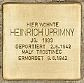HIER WOHNTE HEINRICH UPRIMNY JG. 1933 DEPORTIERT 2.6.1942 MALY TROSTINEC ERMORDET 9.6.1942 |